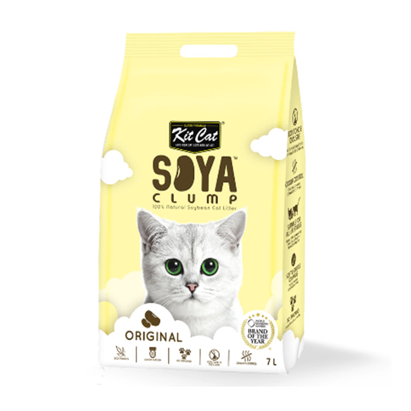 Kit Cat Soya Clump Original Cat Litter is unique kitty litter that is eco-friendly. Made with the insoluble parts of a soybean, this litter quickly and effectively removes odour, and forms scoopable clumps right away. Plus, it can be flushed in small quantities, or even used as fertilizer! This litter has a pleasant, mild scent.