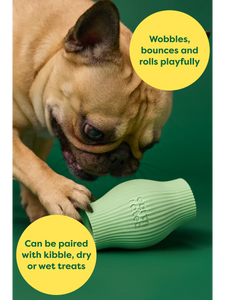 • Wobbly, rolling shape provides interactive stimulation and keeps your pup engaged.