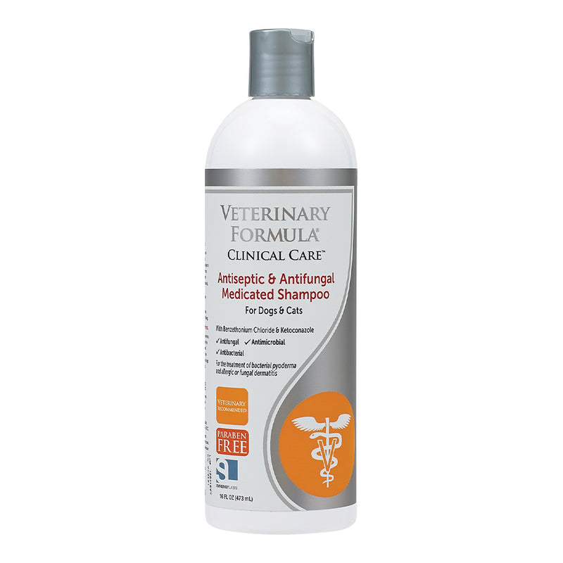 Veterinary Formula Antiseptic and Antifungal Medicated Shampoo for Pets is a scientifically formulated shampoo to help effectively deodorize and relieve bacterial and fungal skin infections such as bacterial pyoderma and allergic or fungal dermatitis. Made with powerful ingredients like benzethonium chloride, an anti-bacterial agent and ketoconazole, an anti-fungal, to help relieve bacterial and yeast infections.