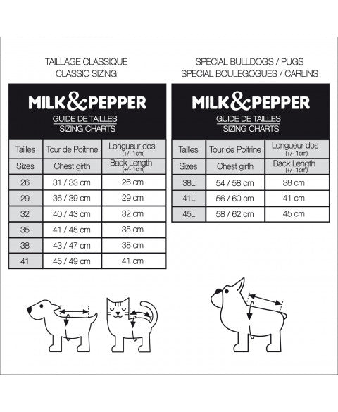 - Sizes L - Specially adapted to the morphologies of bulldogs and Pugs, with a wider body circumference