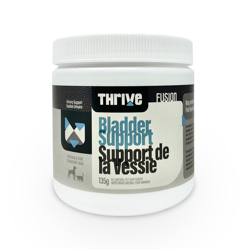 Thrive Bladder Support contains Organic Cranberry Extract and D-Mannose, along with 7 other herbs and nutrients to provide bladder and urinary tract support for both cats and dogs.