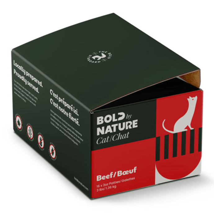 Our Cat patties are raw done right. Every beef patty is packed with ground beef meat, ground bone and organ meat. Nutrient- rich. Bold flavour.