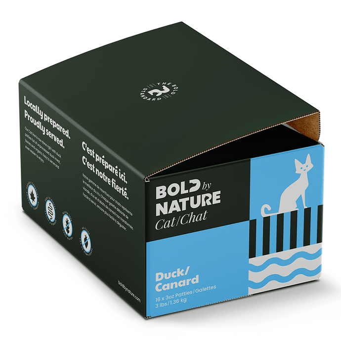 Our Cat patties are raw done right. Every duck patty is packed with farm-fresh ground duck meat, triple-ground bone and organ meat. Nutrient-rich. Bold flavour.