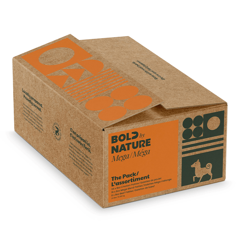Locally prepared with pet approved ingredients. The Chicken Variety Pack comes with Mega Chicken patties, Mega Blend patties and Mega Beef patties allowing you to switch up the flavours with ease.