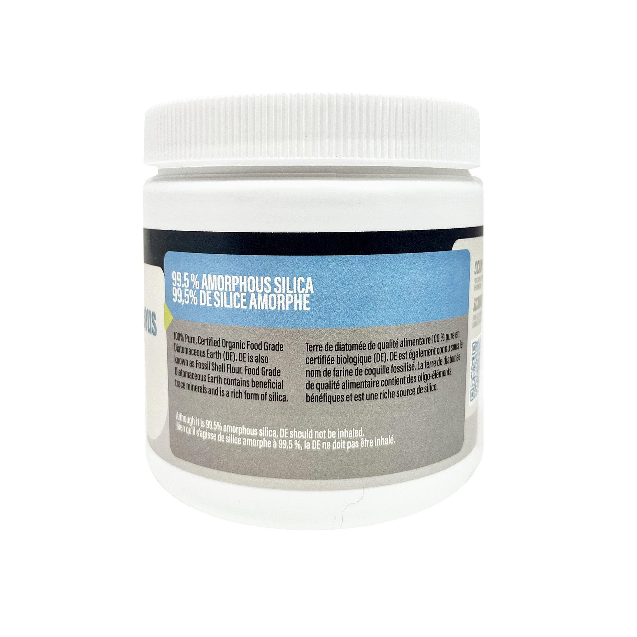 100% Pure, Certified Organic Food Grade Diatomaceous Earth (DE). DE is also known as Fossil Shell Flour. Food Grade Diatomaceous Earth contains beneficial trace minerals and is a rich form of silica. 100% Organic, non-toxic, and great for internal use.