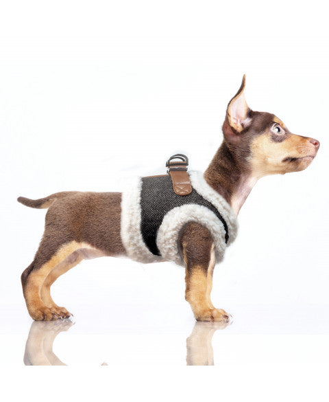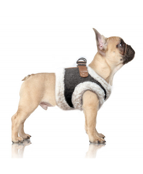 • Harness jacket in tweed and camel imitation leather created especially for small and mid-size dogs