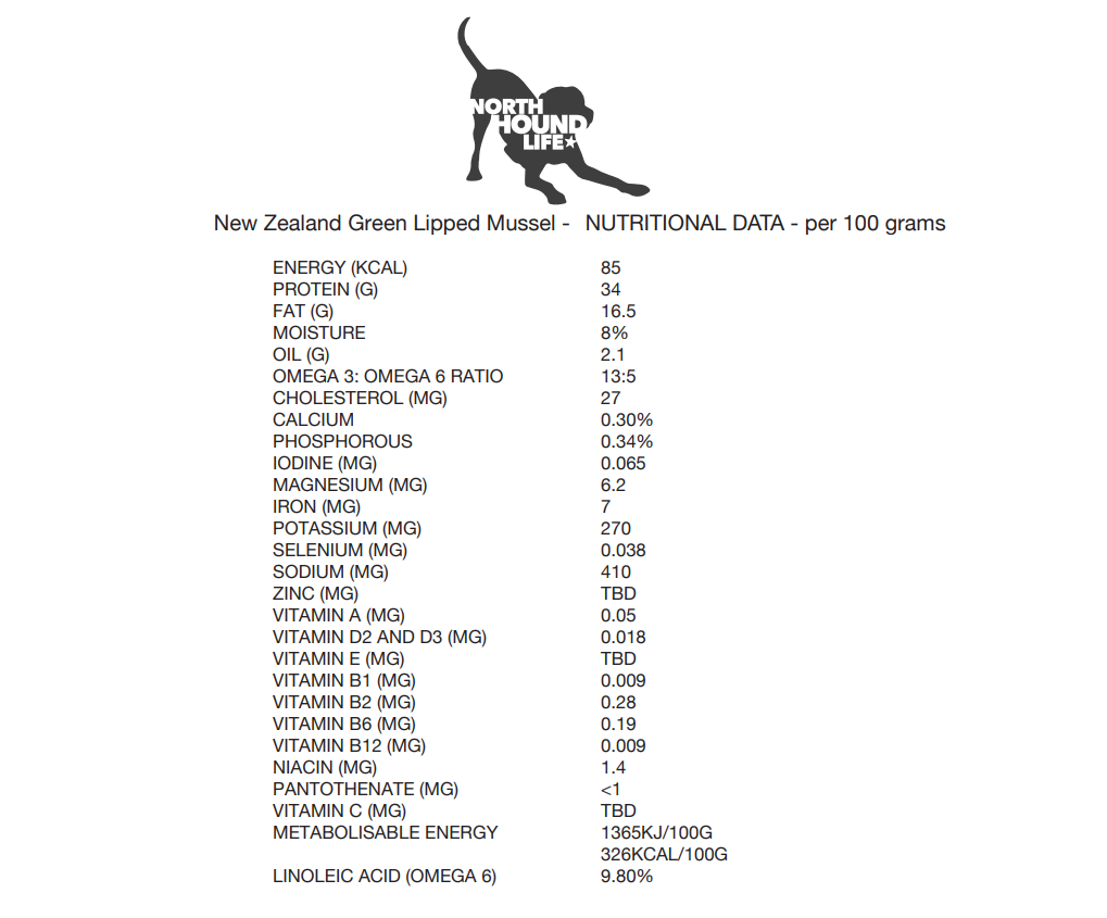 Ingredients: 100% freeze dried New Zealand Green Lipped Mussel meat (perna canaliculus)