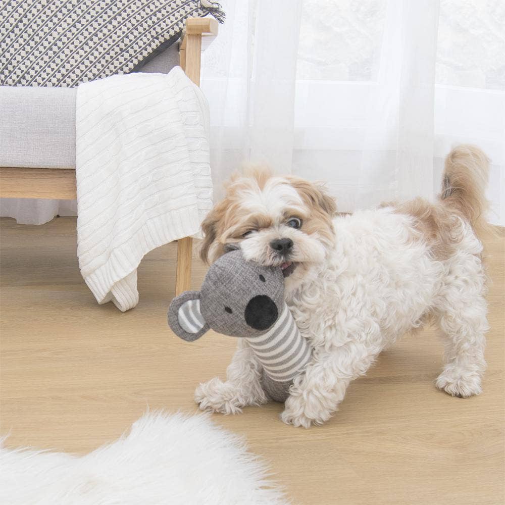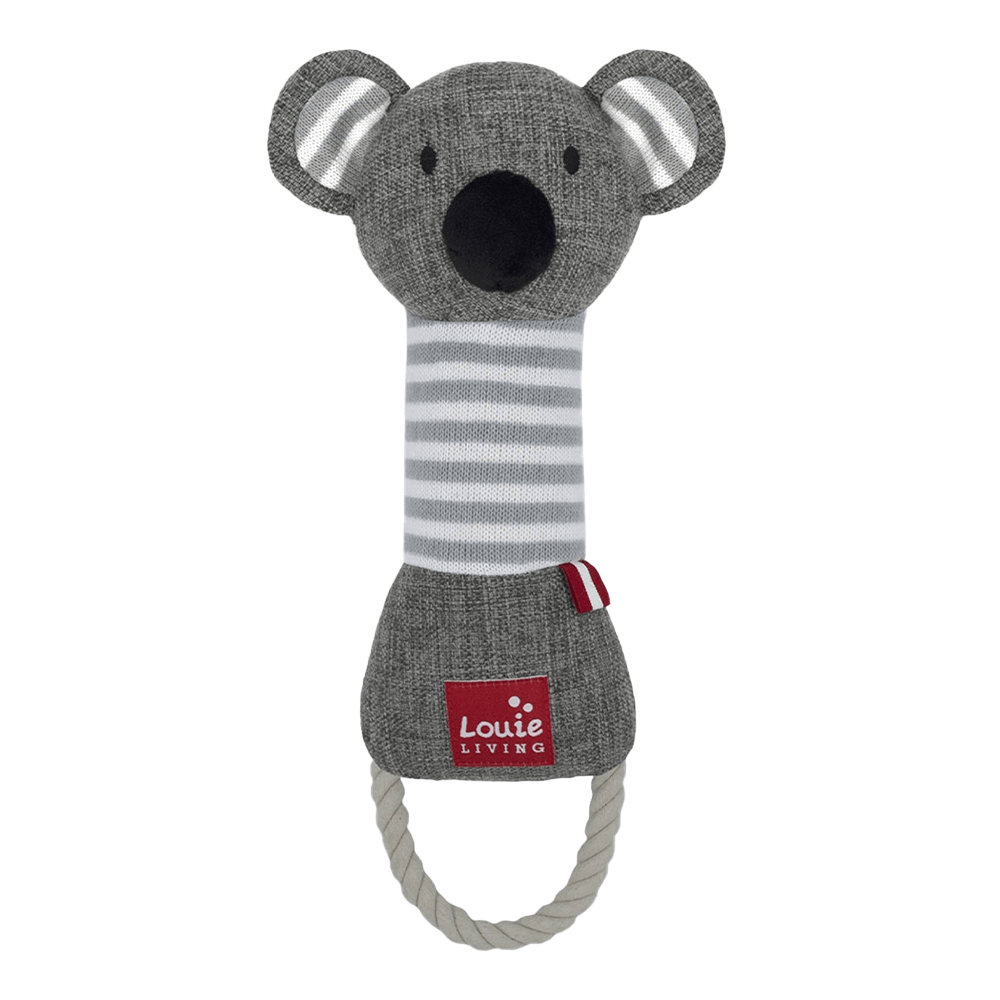 Kester the koala  is the perfect stylish toy for interacting with your furry friend or letting them and Eric get to know each other when home alone.  With a soft fabric to carry around in their mouth, and a rope to tussle around with, Kester  will provide hours of entertainment.