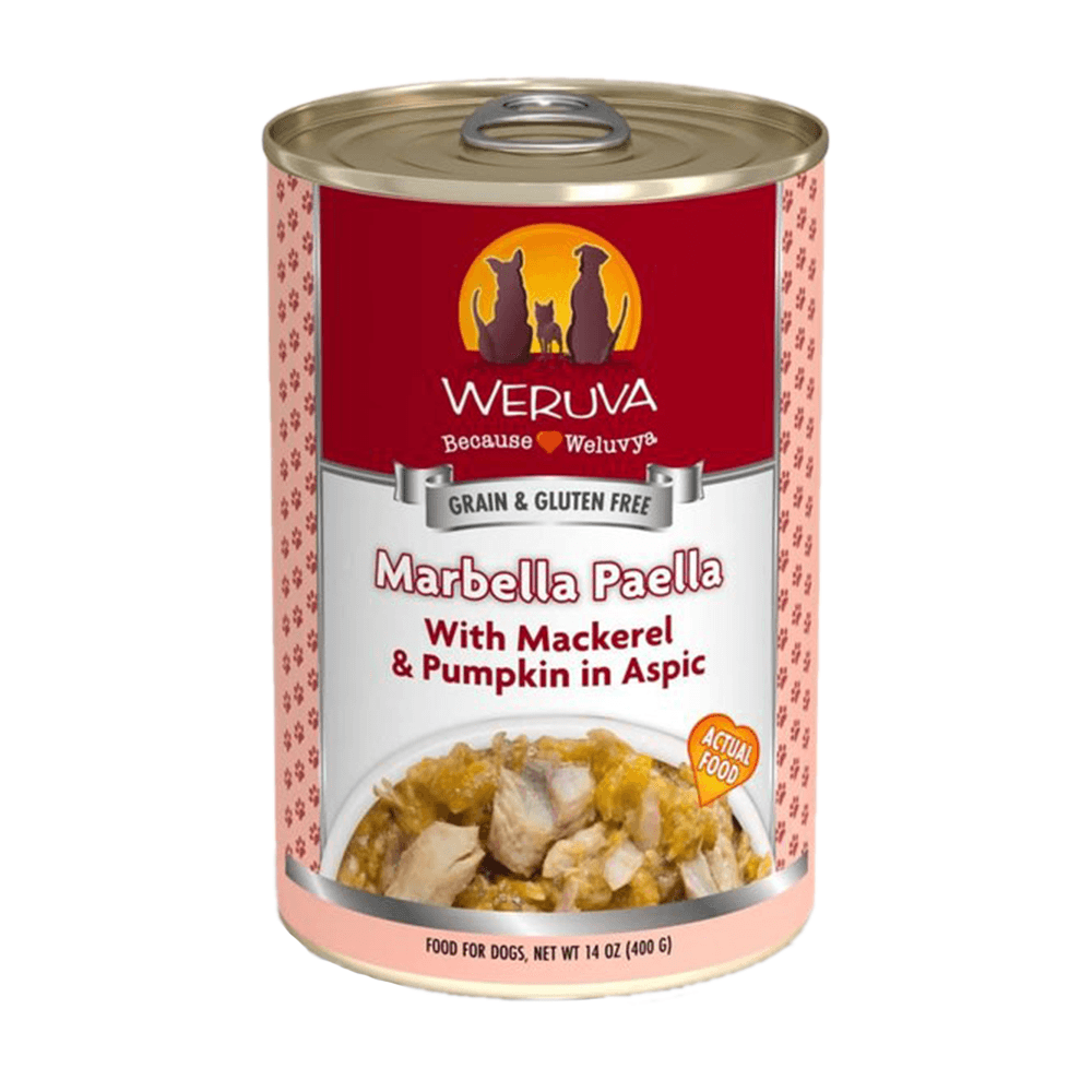 If you can't bring your dog to Spain... bring Spain to your dog! Let them enjoy a paella mix of mackerel flakes and pumpkin... Por el mucho hambre perro! Fabulosa! Loaded with omega-3 fatty acids for healthy skin and coat!