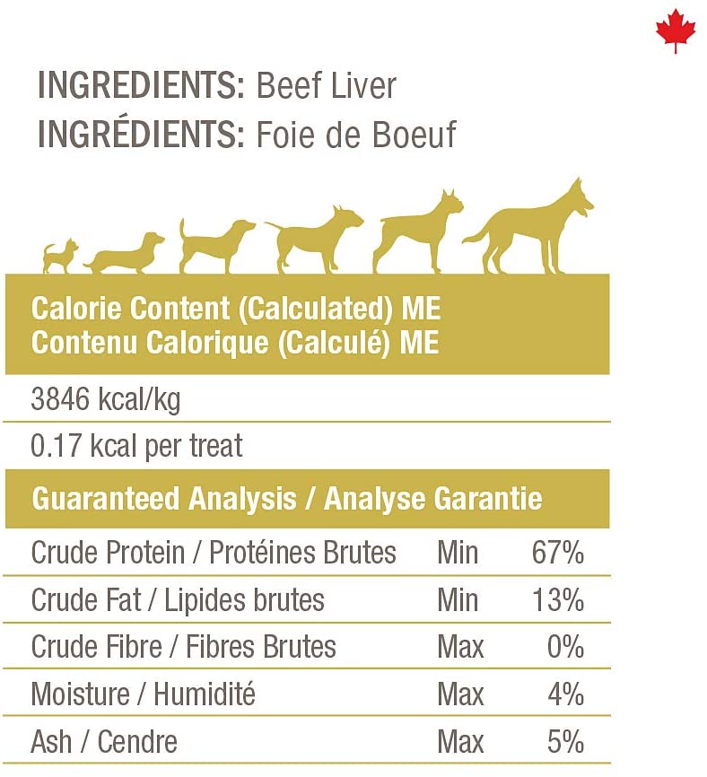 Canadian beef liver cut into tiny cubes. Each bite-size morsel is big on flavour