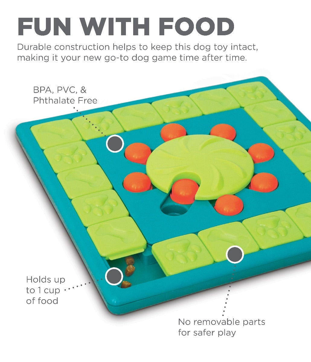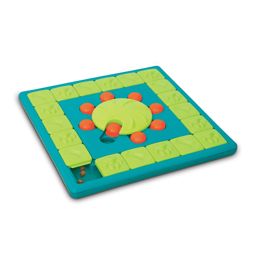 The Nina Ottosson by Outward Hound MultiPuzzle level 4 dog game will keep your dog entertained for hours as they use their natural hunting skills to seek out the hidden treats! Your pups' favorite treats can be easily hidden in either the outer or central compartments by sliding the puzzle pieces. This puzzle is ideal for dogs who have already mastered levels 1-3 of the Nina Ottosson puzzle line. Made from tough non-removable plastic parts and food safe materials that are BPA, PVC, and phthalate-free. Hand Wash with soap and water to clean.