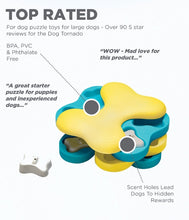 • INTERMEDIATE DOG PUZZLE: Exercise your dog’s mind with the interactive level 2 Dog Tornado puzzle toy. This engaging dog treat dispenser provides a fun physical & mental challenge. Your pup will need to learn how to combine multiple steps to retrieve the hidden treat.