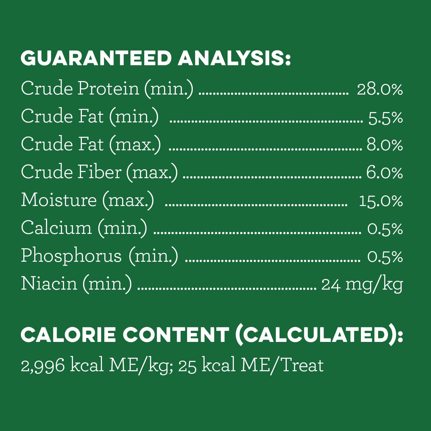 One GREENIES Original Dental Treat a day is all it takes for clean teeth, fresh breath and a happy dog. Your dog can't wait to sink their teeth into these delicious dental chews that are made with natural ingredients plus vitamins, minerals and nutrients and feature a delightfully chewy texture that fights plaque and tartar. Irresistibly tasty and incredibly powerful, GREENIES Dental Treats for Dogs are recommended by U.S. Veterinarians for at-home oral care. Best of all, these dog treats are made with highly soluble ingredients that are easy to digest. Give your dog the mouth-wowing treat that helps promote their oral health with GREENIES Dental Treats for Dogs. Natural Dog Treats Plus Vitamins, Minerals and Nutrients.