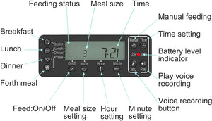• Customize the Amount of Food:Friendly control panel,you can customize the different or same amount of food on each meal, even dispense a minimal amount of kibbles at any given time. With this, you can be sure your pets won't be overfed. Perfect for small and medium dogs and cats.