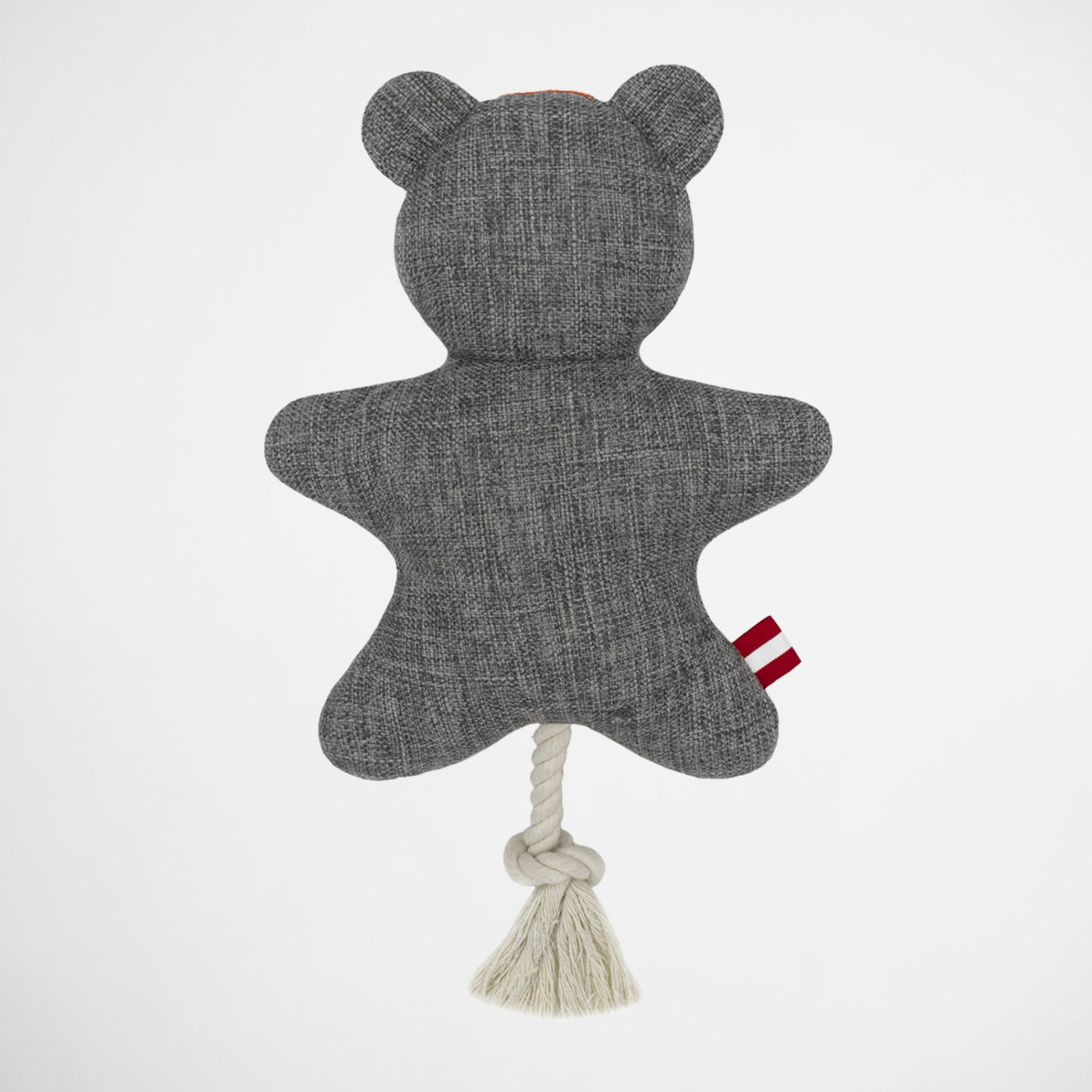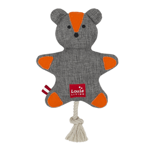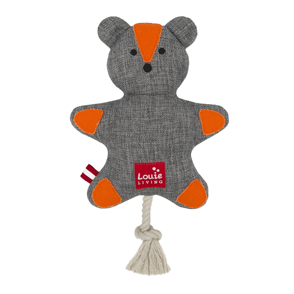 Made from tough textured woven fabric with reinforced edges that's durable yet easy on your pets gums, it features a fun squeaker and rope tail for tun-of-war games.