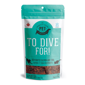 Granville Island Pet Treatery To Dive For Dehydrated Salmon and Tuna Dog Treats are packed full of omega-3 fatty acids, protein, minerals and essential vitamins, great for your dog’s skin and coat and overall well-being. This treat contains only 2 ingredients, wild salmon and albacore tuna, great for dogs on limited ingredient diets and those with sensitive stomachs.