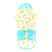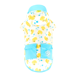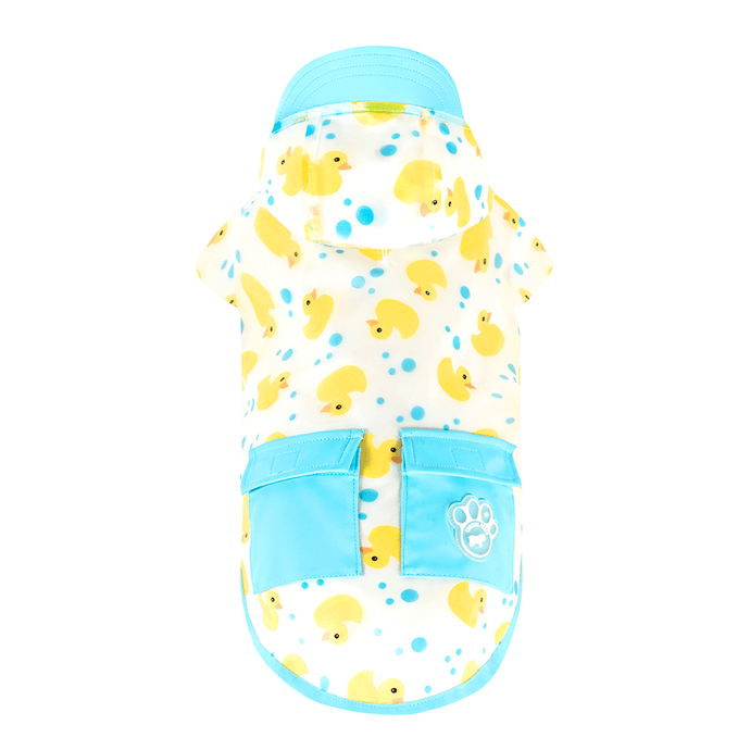 - Water-resistant transparent fabric in a rubber duck print