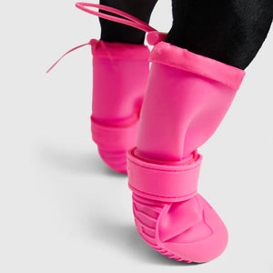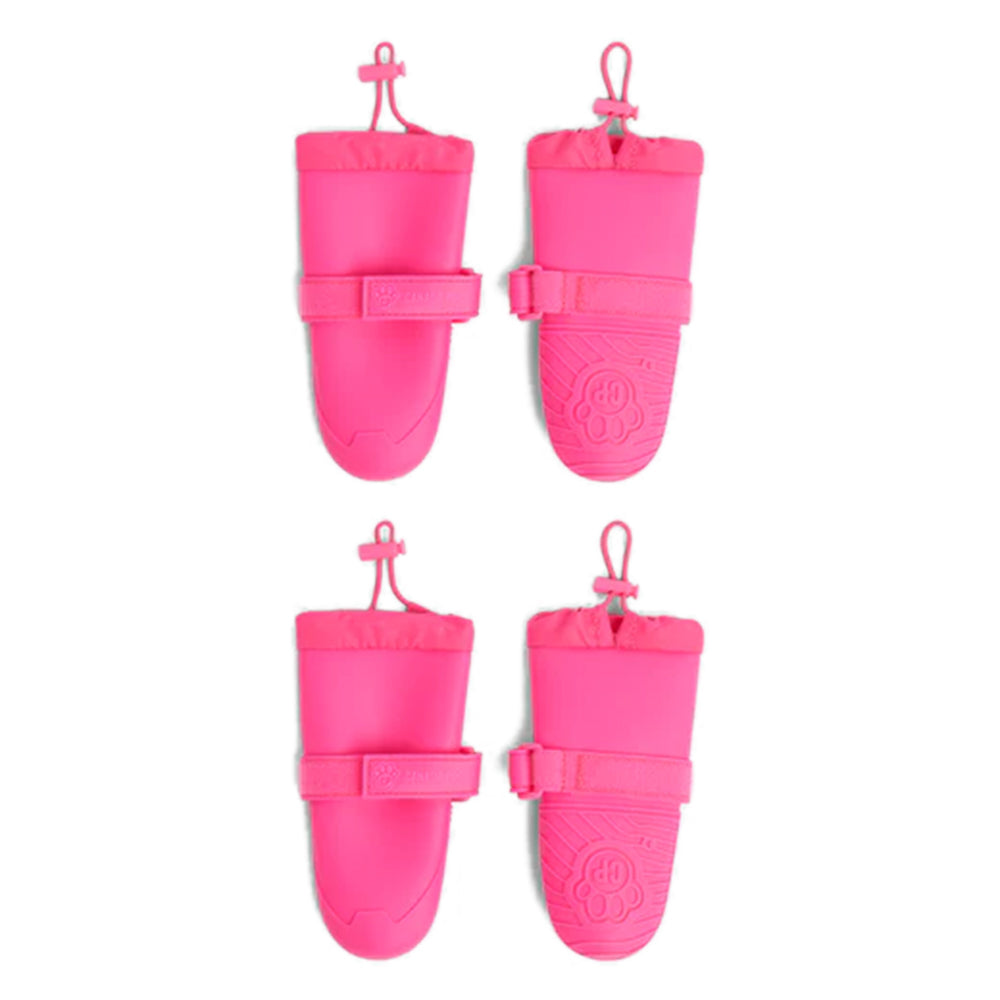 The ultimate waterproof dog shoes that are easy to put on, stay on, and keeps dog paws dry and clean. (Pack of 4)