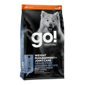 Choosing a weight control diet doesn’t have to mean sacrificing flavour. Dogs will love the taste of our delicious GO! SOLUTIONS WEIGHT MANAGEMENT + JOINT CARE grain-free chicken recipe, with lean protein and functional ingredients like L-carnitine to help burn fat, and glucosamine + chondroitin to help maintain healthy, mobile joints.